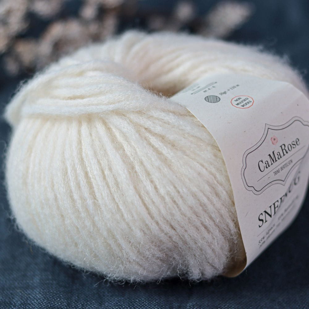 W języku duńskim SNEFNUG oznacza "płatek śniegu". I taka właśnie jest włóczka CaMaRose SNEFNUG: super miękka, lekka, wykonana w całości z naturalnych włókien. Składa się z bawełnianej tuby stanowiącej rdzeń włóczki, w który wtłoczona jest delikatna mieszanka wełny merino i alpaki. Daje to mocną, a jednocześnie bardzo miękką włóczkę. SNEFNUG nadaje się do wykonywania dzianin zarówno dla dorosłych, jak i dla dzieci.