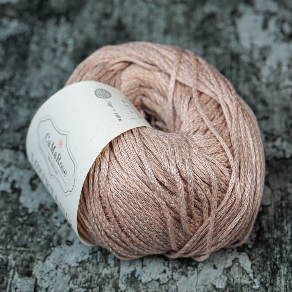 CaMaRose LOVETAND to włóczka składająca się w 100% z organicznych włókien lnianych. Wykonana jest z cienkich nitek lnianych, które utkane są w rurkę. Taka struktura sprawia, że włókna lniane wydają się bardziej miękkie, niż w przypadku pojedynczej nitki.