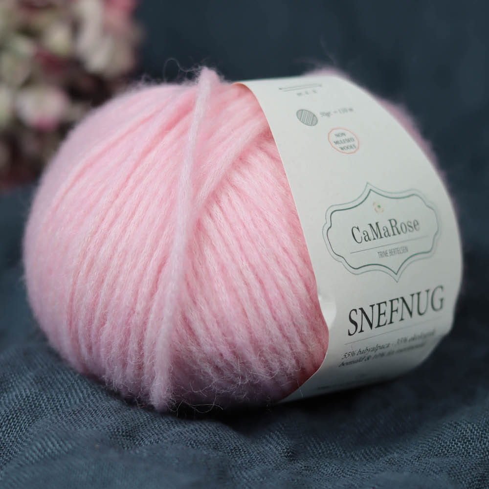 W języku duńskim SNEFNUG oznacza "płatek śniegu". I taka właśnie jest włóczka CaMaRose SNEFNUG: super miękka, lekka, wykonana w całości z naturalnych włókien. Składa się z bawełnianej tuby stanowiącej rdzeń włóczki, w który wtłoczona jest delikatna mieszanka wełny merino i alpaki. Daje to mocną, a jednocześnie bardzo miękką włóczkę. SNEFNUG nadaje się do wykonywania dzianin zarówno dla dorosłych, jak i dla dzieci.