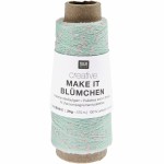 Włóczka Make It Blümchen to cieniutka nić ozdobiona delikatnymi cekinami w kształcie kwiatów. Drobne kwiatki są harmonijnie wkomponowane w przędzę nośną i idealnie dopasowane kolorystycznie. Nitka bazowa wykonana jest w 100% z włókna lyocell.