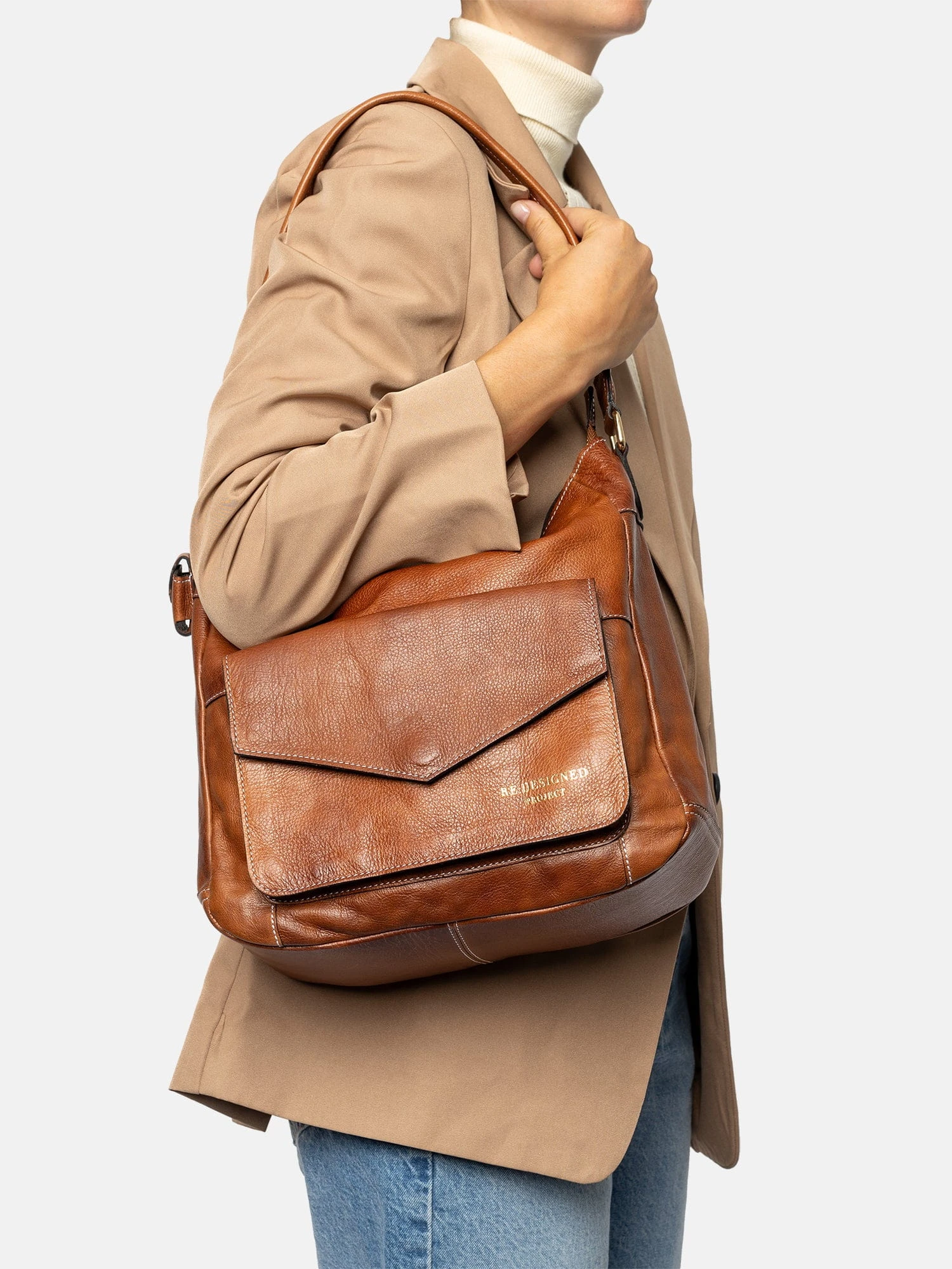 Project 1 marki RE:DESIGNED to elegancka torebka na ramię łącząca funkcjonalność z ponadczasowym stylem. Charakteryzuje się przestronnym wnętrzem idealnym do przechowywania codziennych niezbędników. Wyposażona jest w regulowany pasek na ramię, co pozwala na dostosowanie jej do indywidualnych potrzeb użytkownika. Zapięcie na zamek błyskawiczny gwarantuje bezpieczeństwo przechowywanych rzeczy.