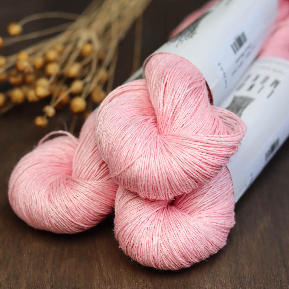 Lino Mūka może być przerabiany pojedynczą lub podwójną nitką. Świetnie się nadaje na lekkie ażurowe chusty, szale oraz lekkie letnie topy i bluzeczki.